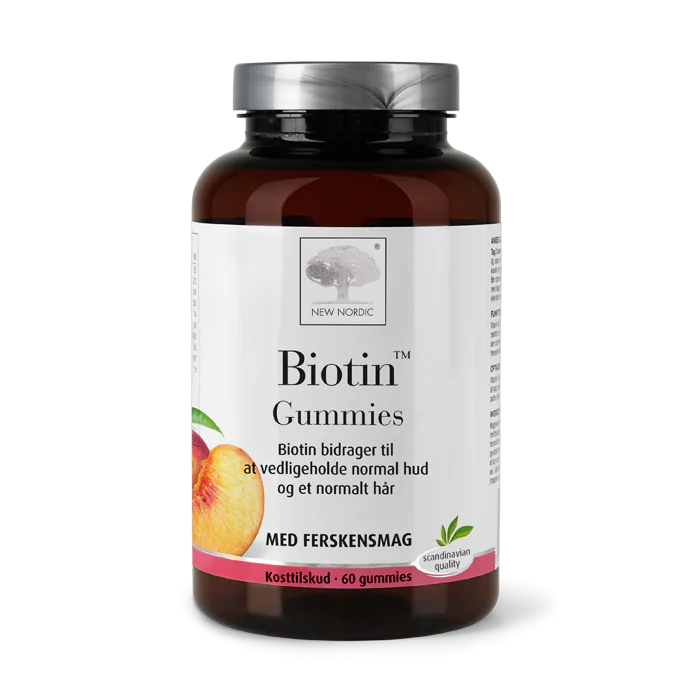fast lav fragt 25,- kr - gratis over 599,-Biotin bidrager til at vedligeholde normal hud og et normalt hår samt til en normal omsætning af makronæringsstoffer. Biotin Gummies har en dejlig smag af fersken.