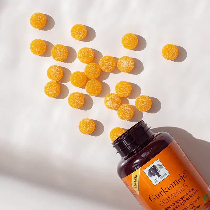 Gurkemeje™ Gummies er en sukkerfri og vegansk gurkemeje gummy tilsat en let smag af mango og appelsin. Gurkemeje hjælper med at bevare sunde og fleksible led.