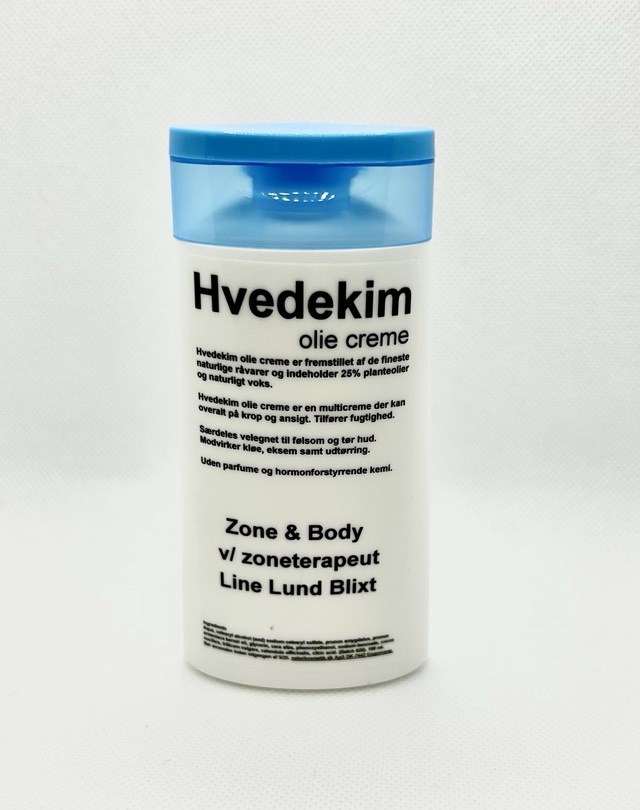 Hvedekim olie creme er en multi creme, der kan benyttes til babyer, børn og voksne overalt på krop og ansigt. Absorberes hurtigt af huden og efterlader den blød, uden at fedte. Cremen er fremstillet af 99,98% naturlige råvarer.