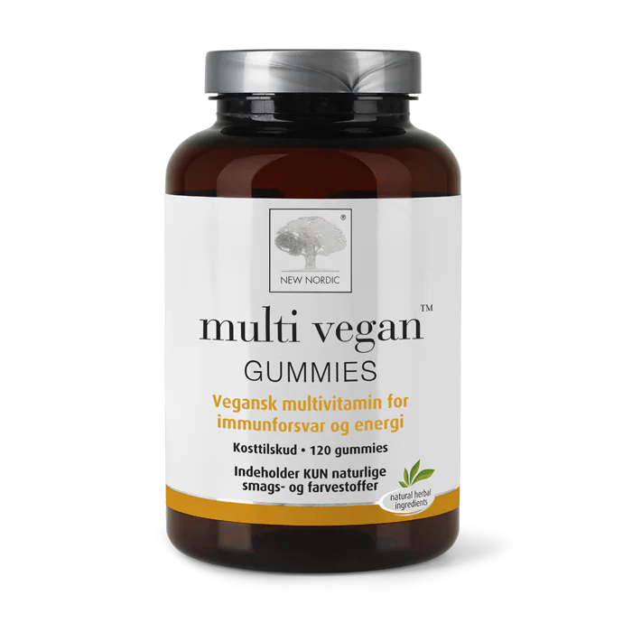 Vegansk multivitamin for immunforsvaret og til energi – med naturlige farve- og smagsstoffer.