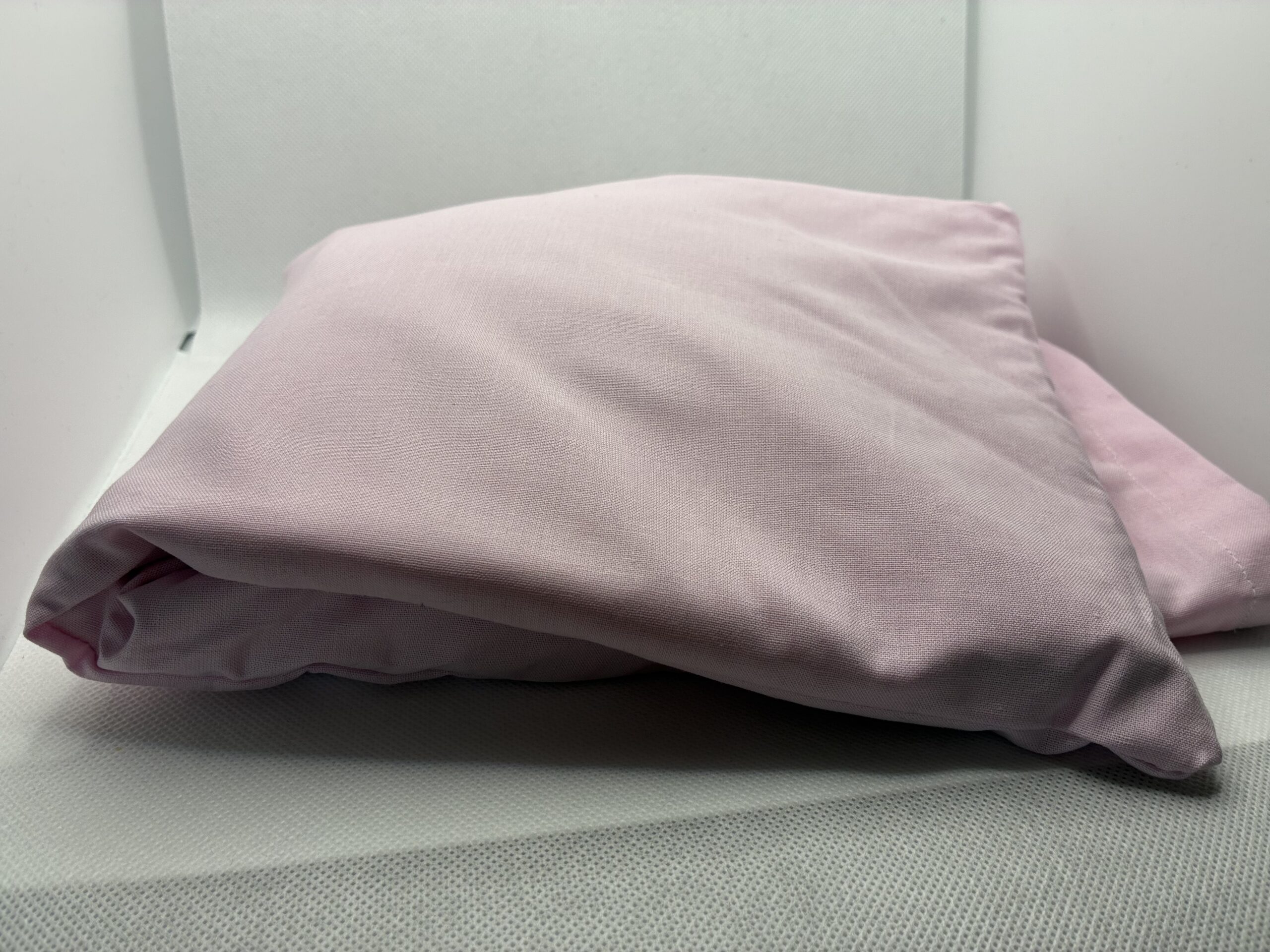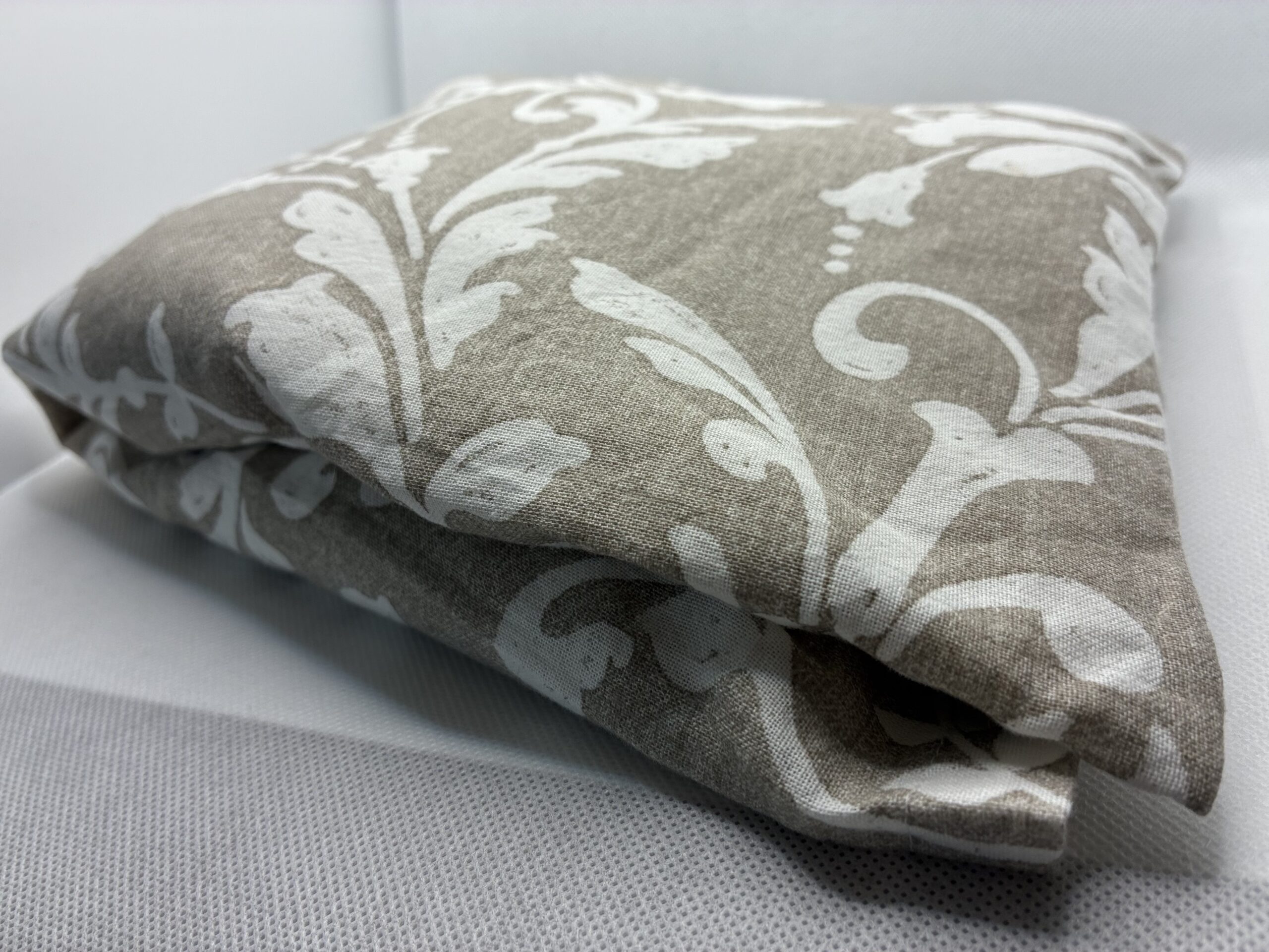 Varmepuden er håndlavet og har et yderbetræk der kan vaskes ved 40 grader. Måler ca. 23×55 cm og vejer ca. 1500 g.